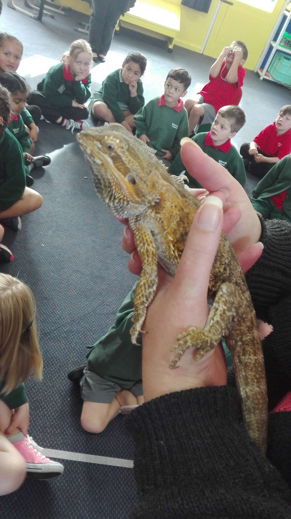 Whaea Debbie brought Lizzie the bearded dragon into Team Awa for a visit.